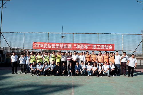 为丰富员工业余文化生活,增强员工身体素质,培养团队协作精神,促进广大员工之间的交流。2016年9月19日,安达集团第四届“和谐杯”职工运动会第二阶段,即“十一国庆文体活动”正式开始。当日下午四时篮球比赛准时开始,东丽区工商联会员企业党委书记张耀国亲临现场为双方队伍开球,比赛中,双方队员本着“友谊第一、比赛第二”的宗旨,积极进攻,严密防守,整场比赛不仅打出了虎虎生威的士气,也打出了队员们的精气神。